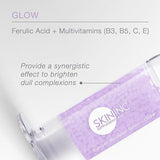 Glow Serum Booster Shot contains Ferulic Acid and Multivitamins such as Vitamin B3, B5, C and E.